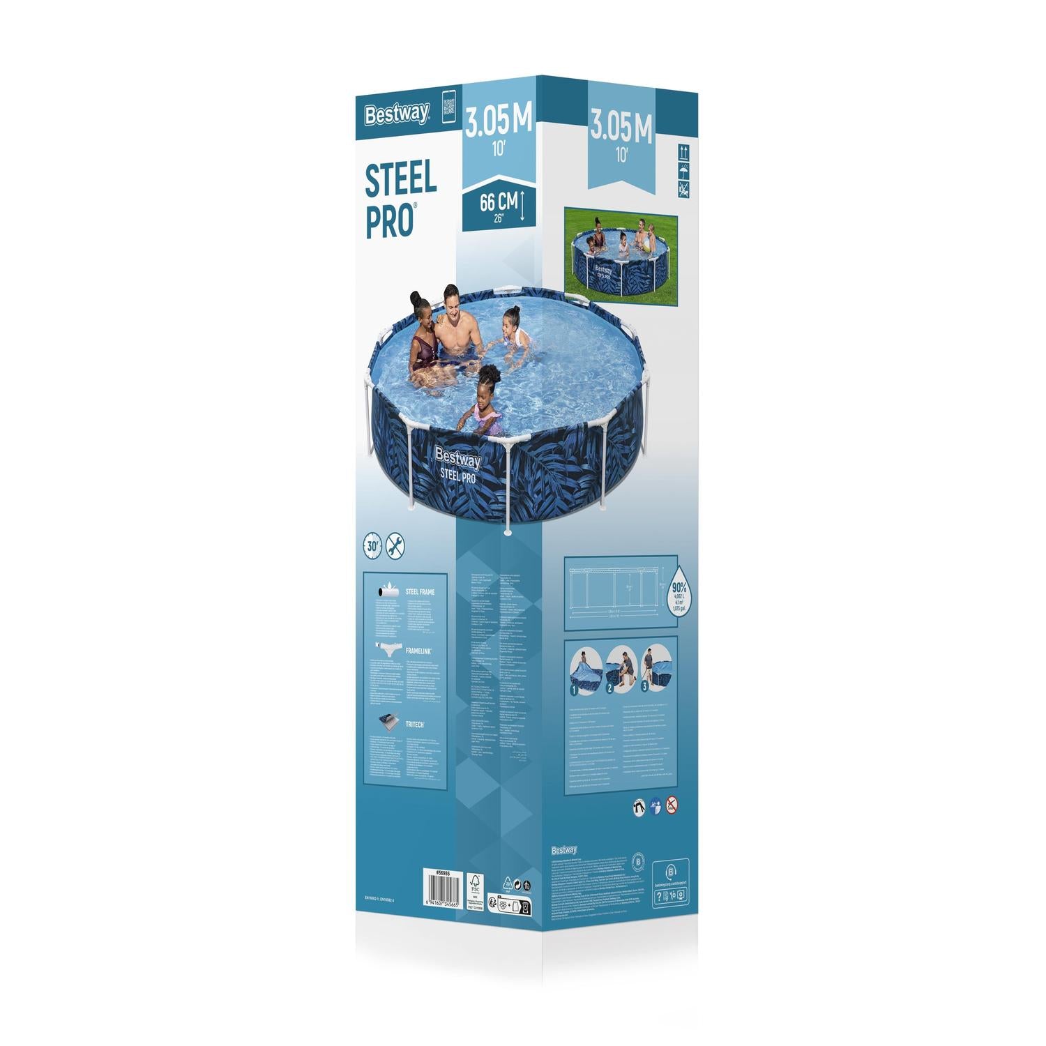 - TAMAÑO IDEAL PARA FAMILIAS: 3,05 m x 66 cm (10 pies x 26 pulgadas) La piscina redonda Steel Pro de Bestway tiene capacidad para 4.062 L (1.073 galones) de agua
